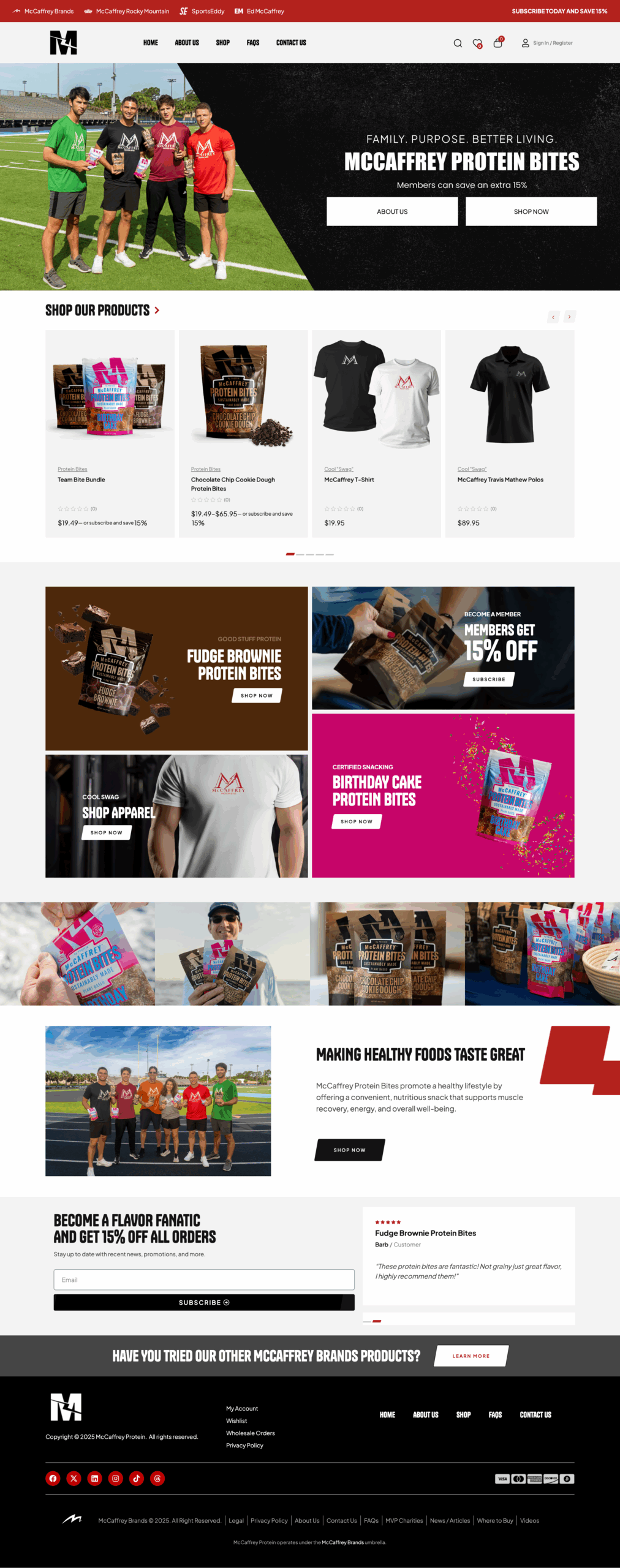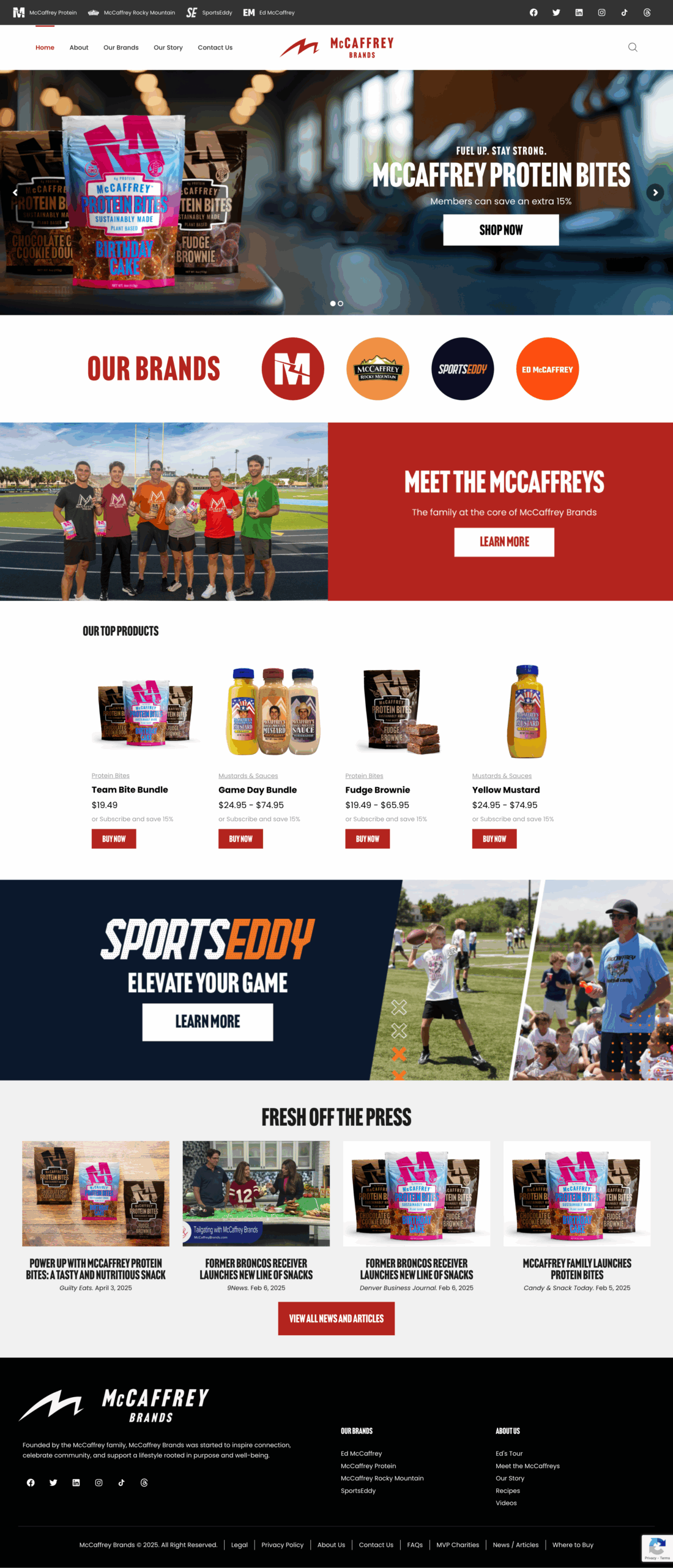 Originally hosted on a single site, the new structure established dedicated platforms for each brand, including McCaffrey Protein, McCaffrey Rocky Mountain, SportsEddy, and Ed McCaffrey’s personal site. This allowed each to develop a distinct identity with independent infrastructure.