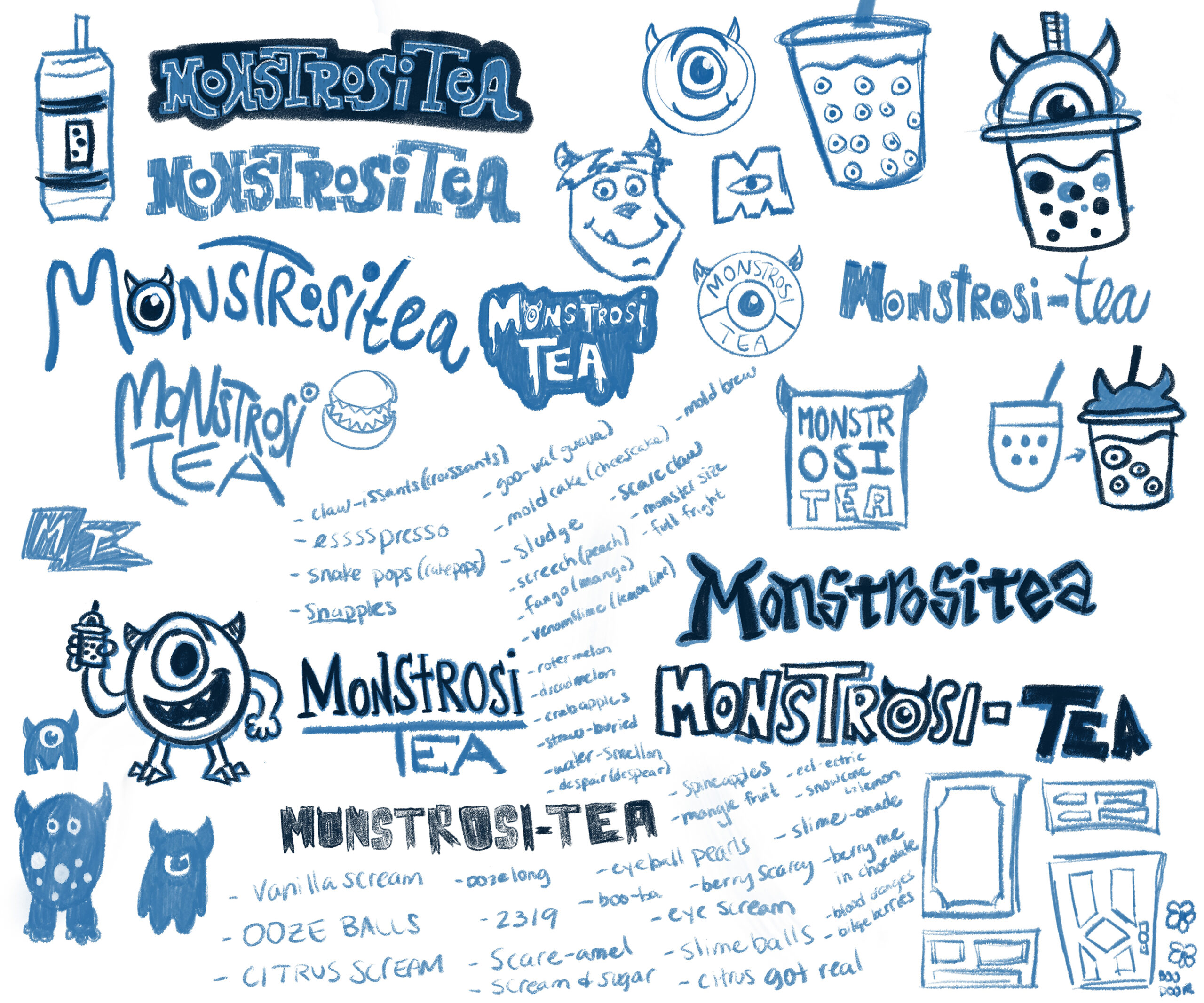 What if the world of Monsters Inc had its own bubble tea shop? That was the spark behind MonstrosiTea, a playful personal project that reimagines the monster world through a colorful boba brand. Inspired by the charm, humor, and character design of the Monsters universe, I created a tea concept where friendly monsters run the shop and each drink has its own personality, flavor, and visual identity.