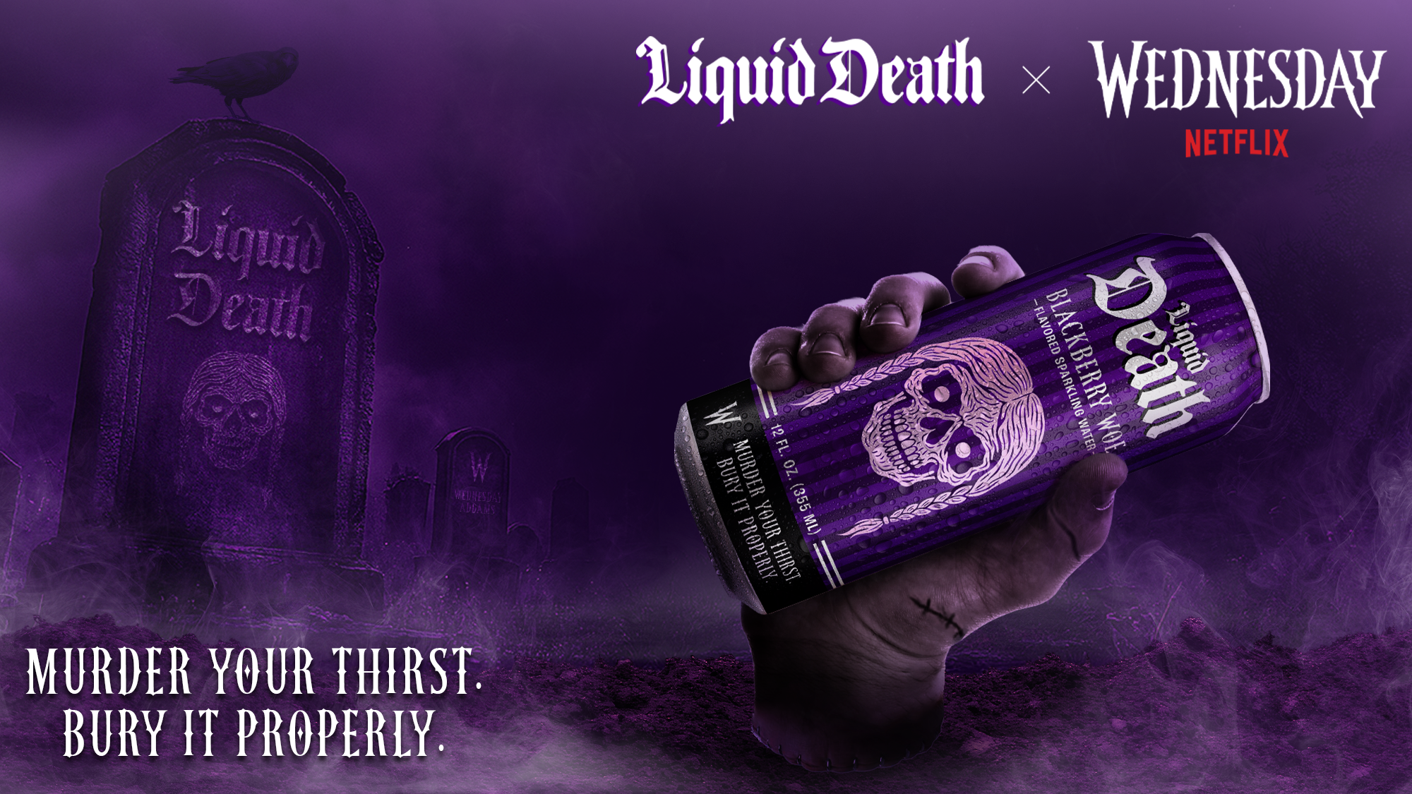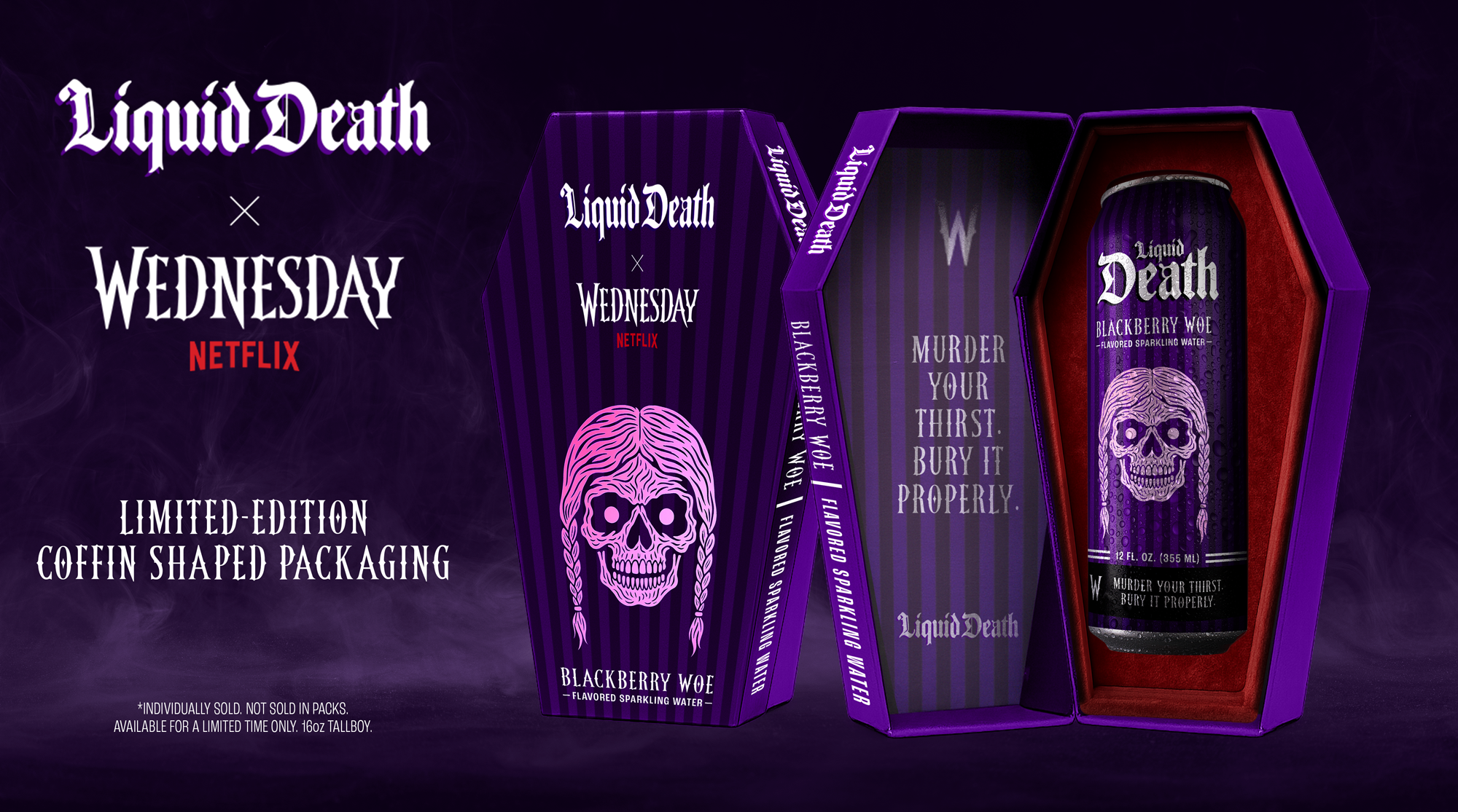 This limited-edition concept merges ominous elegance with tongue-in-cheek irreverence, creating a product that fans of both Wednesday and Liquid Death would want to collect, and maybe even shudder with delight.